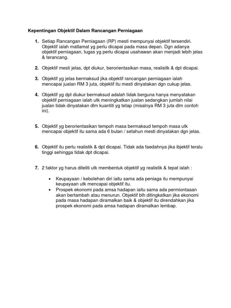 Rancangan Perniagaan Kepentingan Objektif Dalam Rancangan Perniagaan Pdf